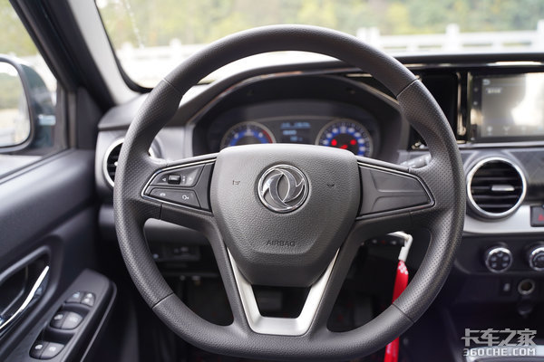 内饰设计方面新锐骐的乘用化特征十分明显。前后排座椅材质均为仿皮,主副驾驶座椅的腰背部包裹性也比较不错,司机座高度可调,可有效减轻驾驶疲劳。