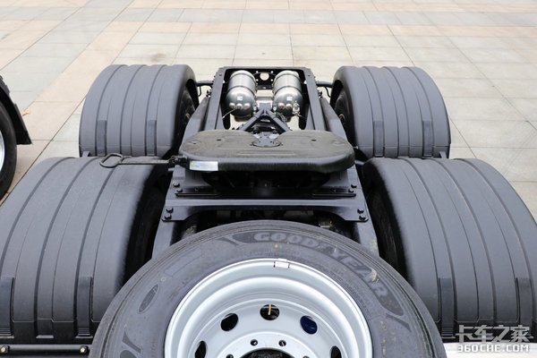 我们再看底盘,这款德龙X6000后桥是装配的汉德SHR-13T单级减速桥,标配空气悬架,速比为3.083。虽然该后桥的速比不是特别小,但是后桥和变速箱搭配后的总速比仅为2.4。