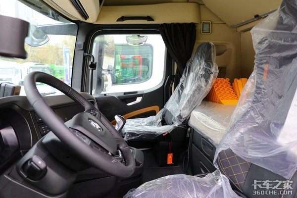 在前面的外观介绍中,小编介绍到这款德龙X6000的车身高度有将近4米,所以它的驾驶室空间也不会让人失望。采用高顶双卧平地板驾驶室,标配四点气囊悬置保证其行车舒适性。