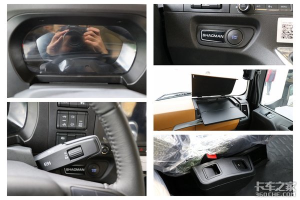 在其他方面的配置上,12寸的液晶仪表盘、方向盘下面右侧组合开关上的定速巡航和发动机辅助制动,还有一键启动、副驾驶位置可折叠的小桌板。另外,该车是采用的电子手刹控制系统,是布置在主驾驶座椅的右侧。