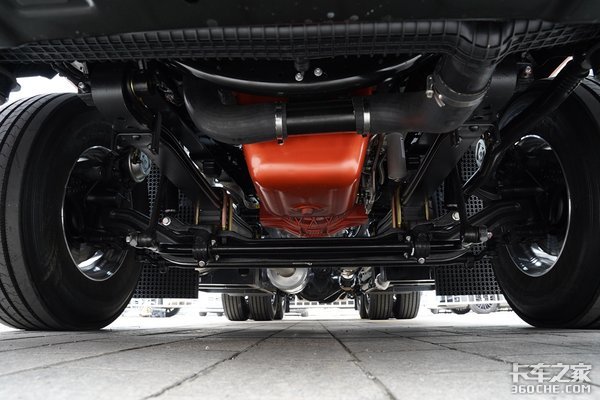 在底盘悬架方面,实拍车型前后桥均采用的是轻量化的少片簧结构。前后桥均采用的是盘式制动器,后桥速比为3.417。当然,除此之外,根据不同的运输工况,这款车型还可以提供多种动力组合可选。