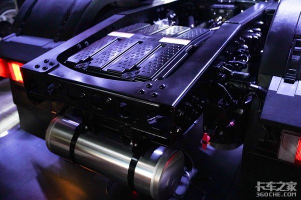 另外,从底盘尾部可以发现,蓄电池以及储气筒均安装在了尾部,不会占用多余的空间。大部分国六的车型都是采用这样的设计,不会与挂车发生干扰。