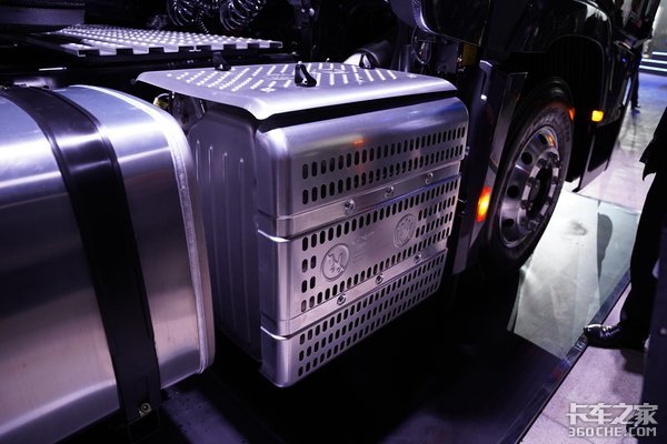 在底盘方面,国六车型相对国五的变化还是非常大。以这辆创虎500马力的车型而言,可以明显发现由于国六后处理体积更大,原有布局在侧面的气瓶以及电瓶位置都发生了改变。尤其是大容量双油箱版本,尿素罐也转移至了驾驶室后方工作台之上。
