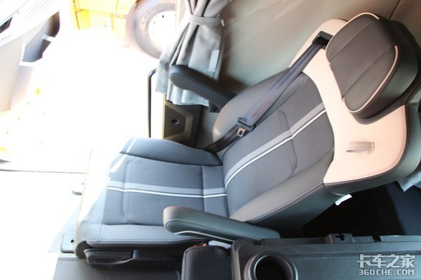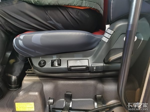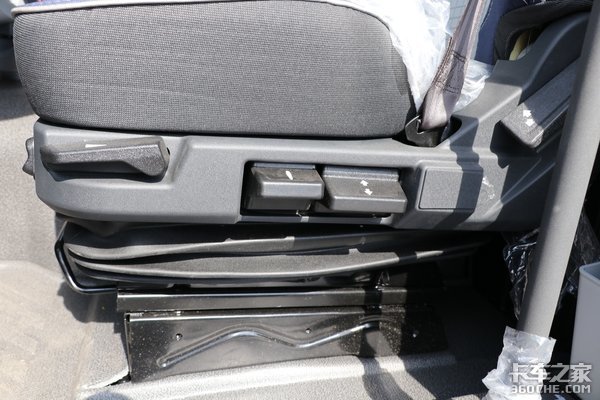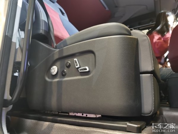 这款车的主驾驶座椅和汕德卡G7使用的配置相同,为气囊减震座椅,可以实现前端倾角调节,而且集成有式腰部支撑以及侧向支撑。这款车的副驾座椅同样支持按摩功能,非常给力。