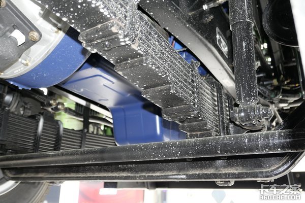 体积巨大的国六后处理器在车辆右侧的导向轮之间。不宽不窄,正好把这个位置给占上。不过我略微担心后处理的热量把后侧的挡泥板给烤坏了。