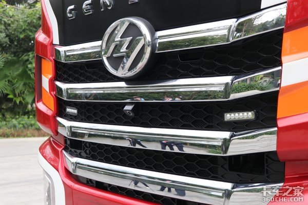 再说回上汽红岩第六代卡车(以下简称H6)本身的外观变化,很明显的是可以看到H6的驾驶室顶部比现款的车型要大一些,从视觉上看到H6的额头更往前了。再就是前面罩变成了4条更粗大的镀铬装饰条,前面罩两侧的导风槽变小了,造型也变成了向上的状态,更加运动。