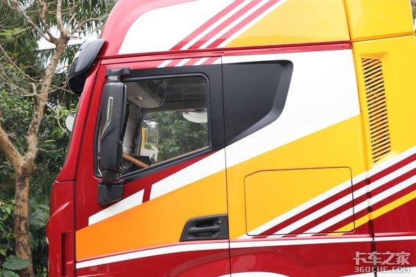 驾驶室的侧面也做了一些升级,从工具箱和卧铺装饰窗的位置来看,H6的驾驶室长度比现款要长一些,带来的好处就是卧铺会更宽。另外H6驾驶室轮眉的位置也更下沉,不像现款那么上挑,显得整个驾驶室更显大。