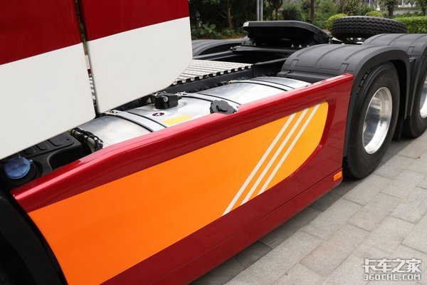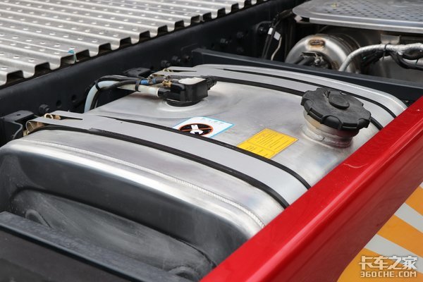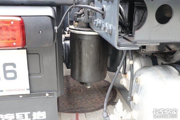 和外观和内饰相比,底盘的变化就更加明显,最直观的就是底盘一些附件的布局的变化,实拍的车型采用双油箱的布局,左侧只有一个超大的油箱和一个加大容积的尿素罐,并且尿素罐采用了异形设计,尿素罐上还设计了柴滤的安装位置。