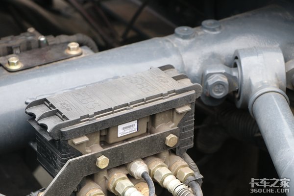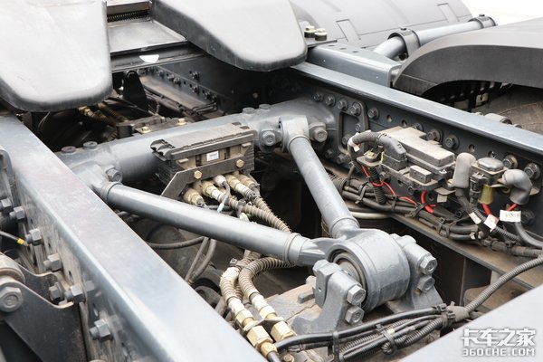 底盘上还有一些可以直观看到的就是管线的布局变化,H6的管线相比现款更加的合理,各类管线的规整更加到位,减少了一些非正常磨损。比如从EBS到制动分泵的管线采用的是钢丝缠绕的气管,这样的话车桥在上下跳动的时候就不会导致气管之间相互磨损。