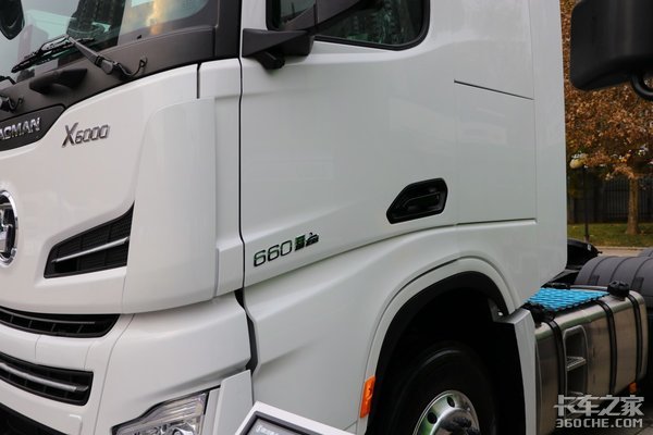 来到车身侧面,整个腰线采用了上扬的设计,不仅符合了高速行驶时的空气动力学,多线条的设计也让X6000造型感十足,侧面660马力加国六的铭牌,仿佛告诉各位卡友,我不是好惹的。