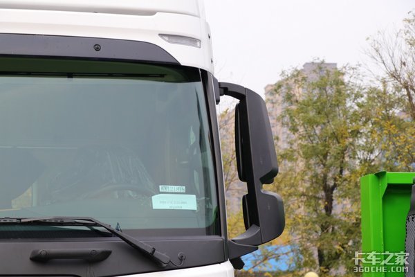 遮光罩采用了黑白双色的涂装,喷漆质量很高,示廓灯为LED光源集成在上面,现代感十足。后视镜采用了一体式结构,值得一提的是X6000的后视镜可调角度很大,这样在进出货场时,对于周围环境的判断更为准确。