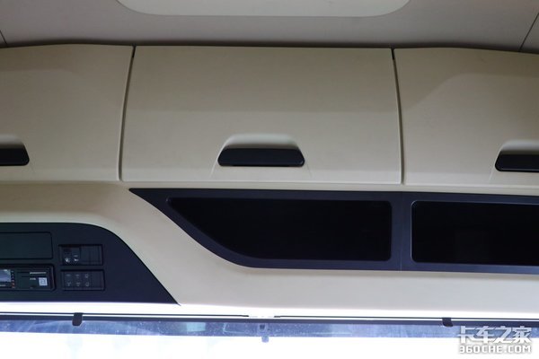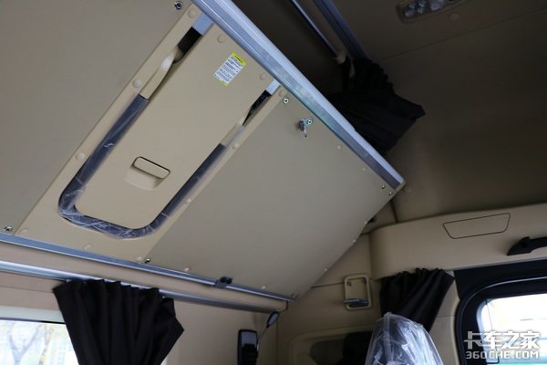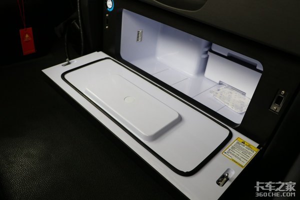 卧铺采用了双卧铺的设计,宽度非常不错,身材高大的卡友都能获得比较充足的休息空间,床垫的厚度不错,在休息时能给身体提供非常不错的支撑性。在卧铺下方还有冰箱的设计,卡友不仅可以在夏天喝到冰镇的饮料也可以保存一些新鲜食材。
