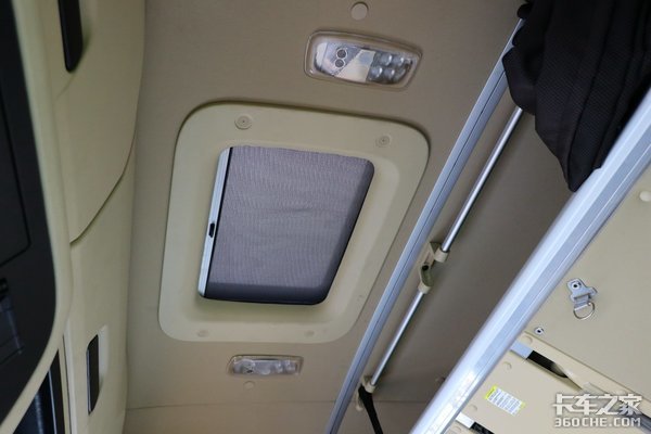 顶部有着三个尺寸可观的储物箱,在下方还有两个储物格,可以放下卡友的一些行车用品和随身衣物。车厢顶部还有着电动的天窗,带有防虫网,这样在夏季夜晚休息时就不怕讨厌的蚊虫骚扰了。