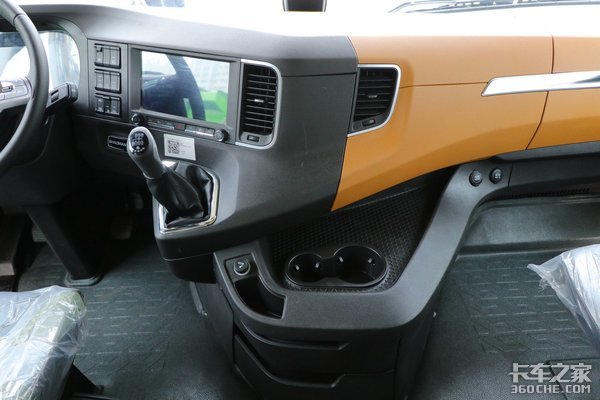 X6000的驾驶室采用了纯平地台的设定,左右之间的移动不受任何影响,非常轻松。中控台上方包覆了一层搪塑工艺的软质材料,触感很棒,左右进行了一个撞色的搭配,与门板上配色遥相呼应,非常具有个性。