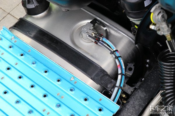 油箱左右总容积为990升,采用了铝合金材质,主油箱位置有蹬车梯的设计,这样的设计比较考验钣金工艺,990升的容积对于X6000来说,应付中长途的干线运输也不在话下,油箱带有油路预热系统,这样在寒冷的冬天也不用过于担心车难以启动。