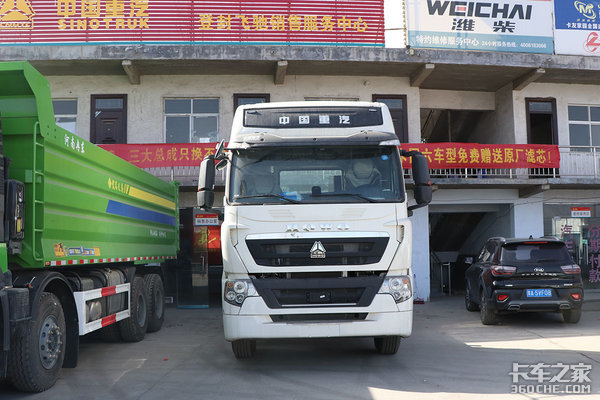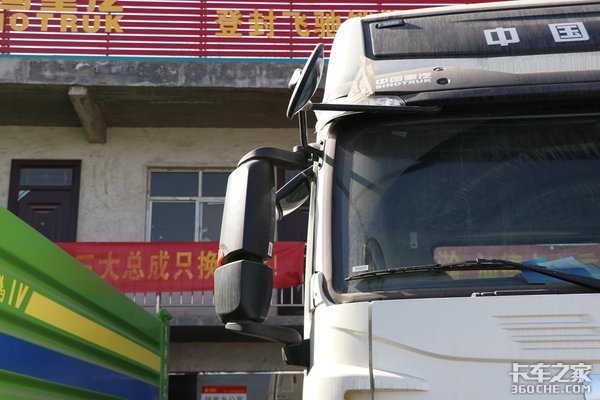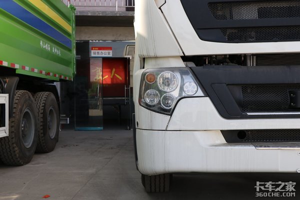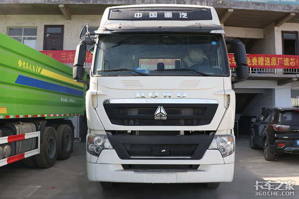 外观方面,这款豪沃T7H依旧延续其家族化的设计,整车珍珠白的喷涂看起来非常的典雅,实拍车标配有导流罩以及导风槽,可有效降低其高速行进时的风阻。