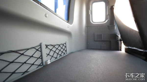 座位后部配备有单卧铺,可以满足驾驶员短暂休息的需要。卧铺一侧设计有储物网兜,方便司机放置手机等物品。同时,卧铺区域还贴心设计了衣帽钩和出风口,使得司机在休息时更加便捷舒适。