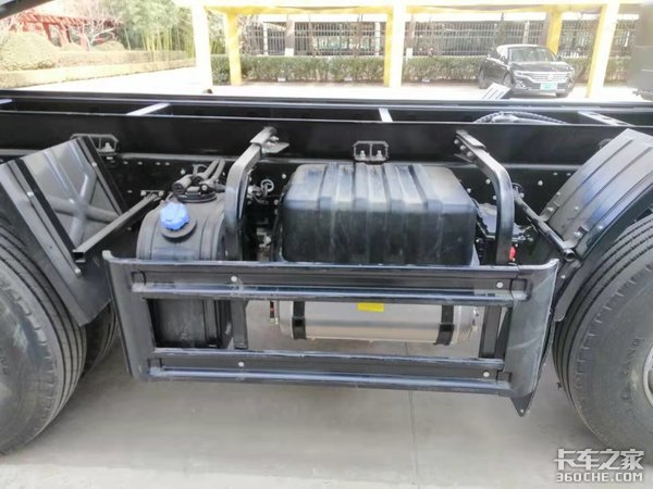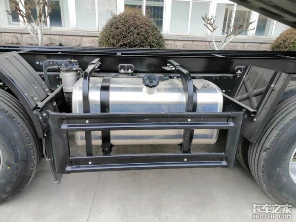 油箱容积为300L,符合自卸车应用场景多为中短途运输的工况。油箱材质为铝合金,自重更轻的同时也更耐腐蚀。