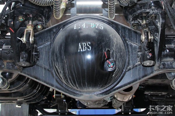 采用1058后桥,速比是4.875。加宽轮距设计,可以更好地适应宽体车厢。