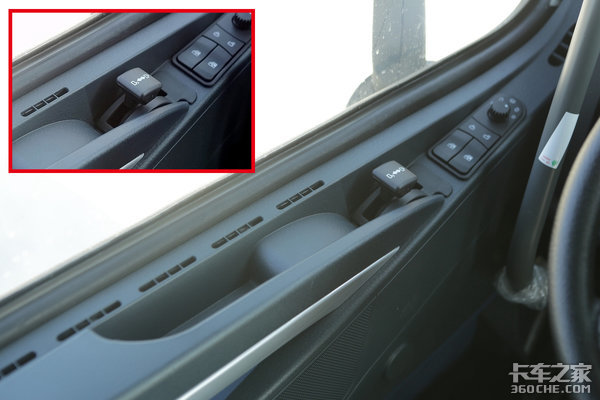 在主驾左手边车门的上方,集成了中控锁、一键升降、后视镜电动调节及电加热等功能,操作时非常方便。值得一提的是,该车的车门拉手造型相当别致,看上去观感也不错。