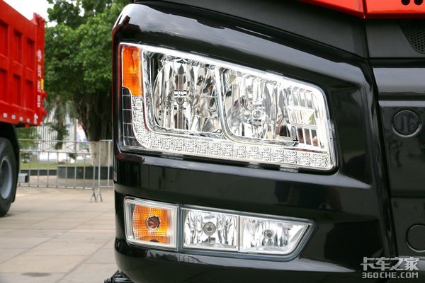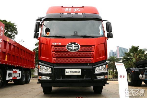 外观上,J6P价值版采用红黑撞色,整车辨识度较高。解放经典的进气前脸让人一眼就能看出来这台J6P的身份。