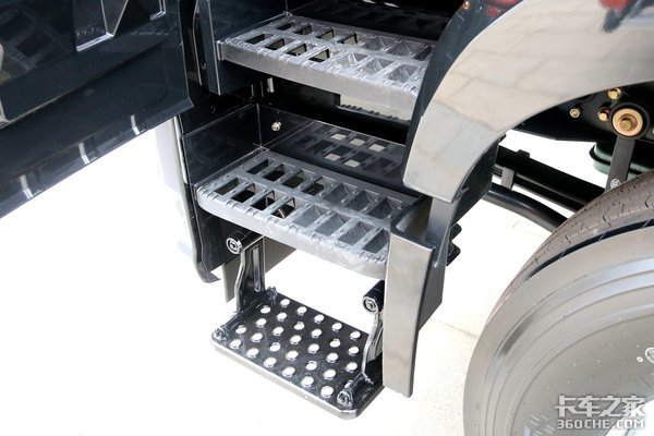 拉开车门可以看到,J6P的第一阶蹬车踏板采用浮动踏板。一般浮动踏板在自卸车上比较常见,出现在J6P价值版上,也说明J6P更适合在恶劣路段行驶,磕磕碰碰也不易损坏。