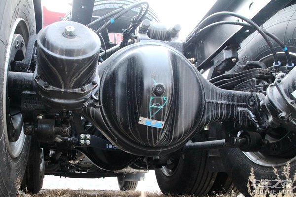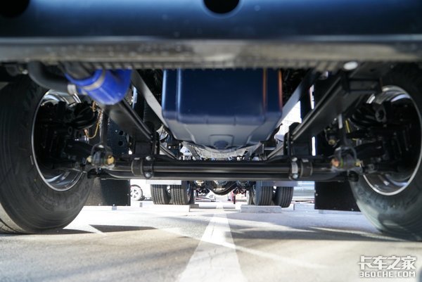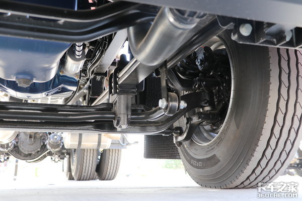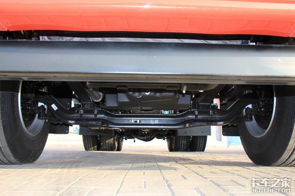 前桥为7.5吨级,悬架弹簧为2片少片簧,并带有防倾杆,保证承载能力的同时还兼顾了一定的舒适性。