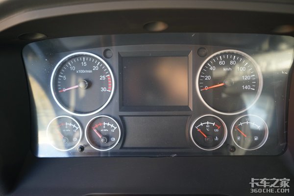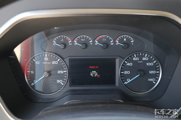 仪表台为彩色液晶+指针式设计,具有较强的乘用化风格,显示效果出众。左侧为车辆时速表和油量表、右侧为发动机转速表和水温表,中间的液晶屏则显示多个项目的数值,观看直观。