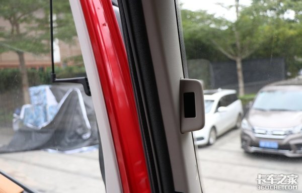 车辆的A柱上还配备了防疲劳预警监视摄像头。另外值得一提的是,杰狮H6的驾驶室采用框架式结构,整体冲压成型,钢板最厚处可达1.5mm。并且该车型还用过的欧洲ECE R29碰撞试验,还采用了驾驶室后移专利技术,在发生碰撞时驾驶室可整体后移500mm,保证行车安全。