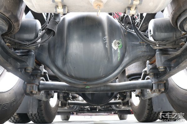 实拍车型的前后桥是采用的6.5T免维护前桥和457免维护后桥,速比为3.083,悬架是采用的前2后空气悬架的配置,空气悬架的滤震效果和车身灵活性等方面要优于传统的钢板悬架。