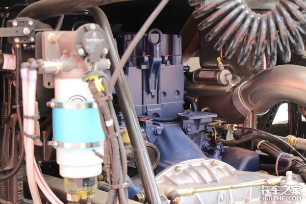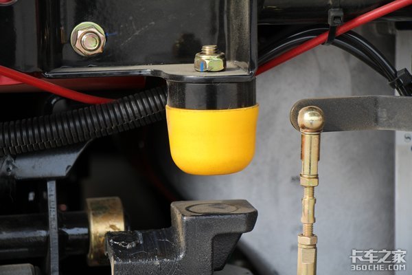 双腔油箱总容积可以达到1000L,大油箱可以加0号柴油,冬天跑北方小油箱可以加更低标号的柴油,另外带有燃油水加热,在油箱上也注明了详细的使用方法。在冬天着火之后使用小油箱更低标号的柴油,至少30分钟再切换至0号柴油,在计划停车前再切换至更低标号的柴油,行驶1小时以上,然后在停车这样可以保证油箱不会上冻。
