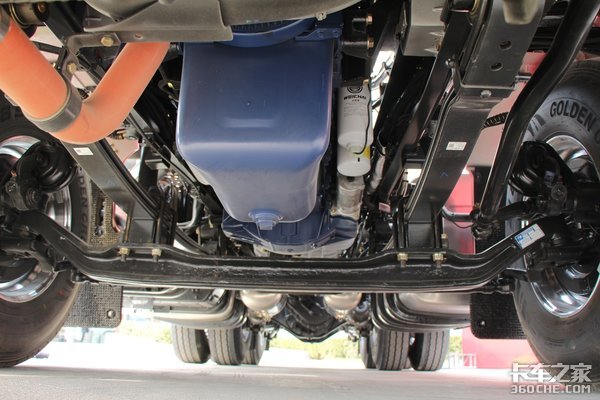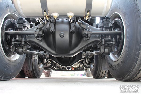 这款超值版X5000前后桥都采用的是汉德免维护产品,前桥为汉德曼技术5.5T级前桥,后桥为11.5T曼技术单级减速桥,后桥速比为3.7,当然了针对不同运输工况,可以选择不同速比。