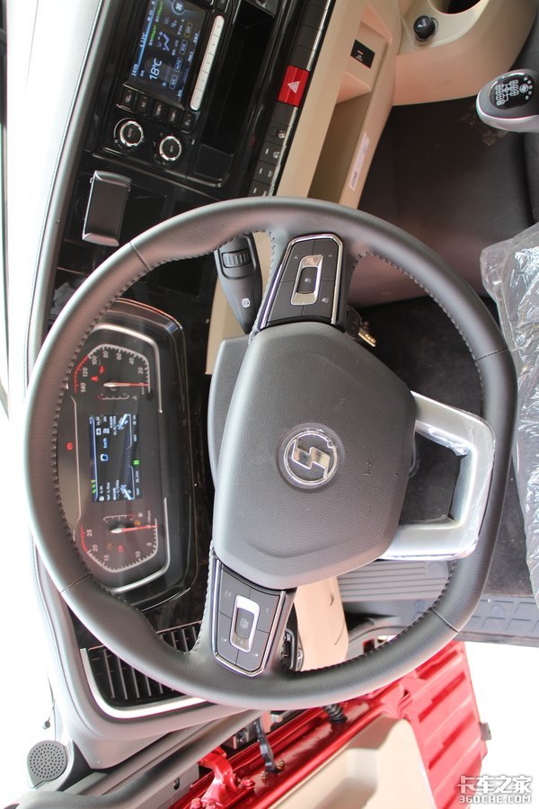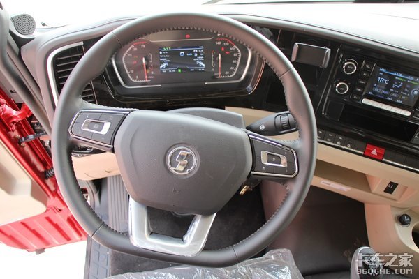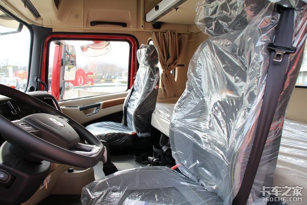 陕汽X5000全系采用的是高顶双卧驾驶室,中间虽然有地台,但是据实际测量1.75米左右的成年人站上去也没有问题,不会碰到头。主驾驶采用的是一体式安全带,可以减少车辆颠簸对于驾驶员肩部的摩擦,提高舒适性。