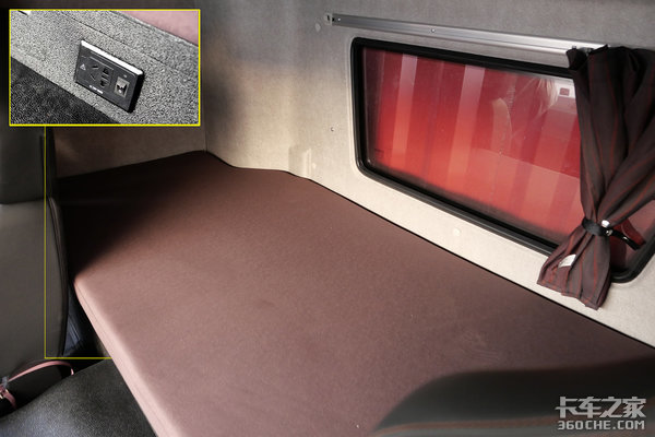 实拍车采用高顶双卧设计,整体卧铺空间表现还是不错的,并且厂家还对其进行了抬高加厚设计,不仅于此在卧铺前侧边缘位置还带有220V 1000W的车载电源,同时下卧铺是可以掀起的,因为下方还有一个储物格,充分保证卡友的舒适性和储物要求。