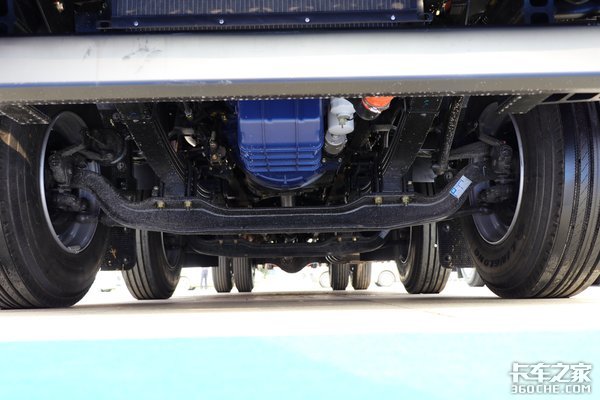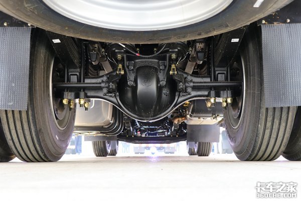 前后桥都采用的是汉德车桥,前桥为5.5吨级前桥,后桥为11.5吨级单级减速桥,悬架方面采用的是前3后4+3的少片簧设计。