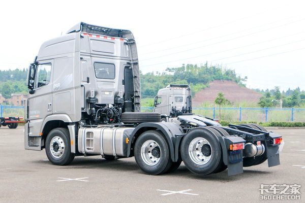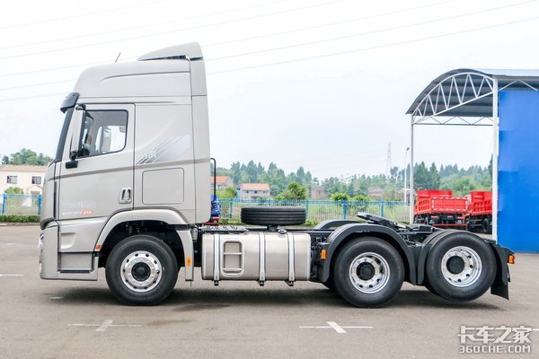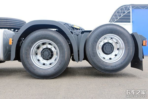 为了适应国内市场的运输现状,现代创虎在轻量化方面做了相当多的努力,如全铝合金车轮、铝合金油箱、气囊悬架等配置,整车底盘自重最终控制在8.54吨,有效提高了车辆的装载能力。