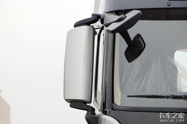 后视镜造型看起来简约而精致,采用高端重卡产品上非常主流的一体式设计,行驶过程中的风阻风噪表现相比分体式设计会更出色。