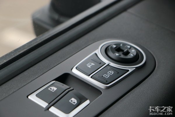 卡友在外行车时难免会遇到雨雾等恶劣天气,这种情况下后视镜极容易被蒙上一层水雾,导致驾驶员视线受阻并带来许多潜在的安全隐患。这款现代创虎的后视镜支持电动调节及电加热功能,控制按键分布在车门控制区域,能帮助卡友及时清除镜面水汽,保证视野清晰。