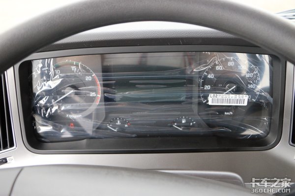 仪表盘采用对称的指针式仪表+超大液晶显示屏的组合设计,从左到右分别是发动机转速表、水温表、油量表、车辆时速表等,中间的行车电脑可实时显示车辆的里程、油耗、轴荷和车辆自检等各项关键信息。