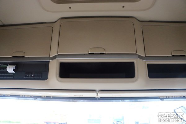 驾驶室顶部安装有三个大容积的储物格和两个容积稍小的储物槽,足够装得下两个驾驶员的各类日常生活用品。