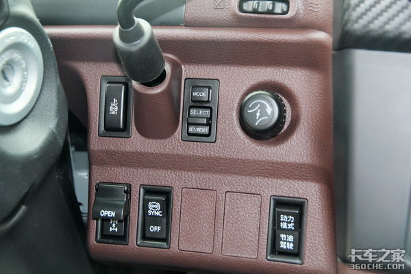 液缓温度检测、行车电脑控制、差速锁、液缓开关以及驾驶模式选择按键等控制区集成在方向盘的右侧。