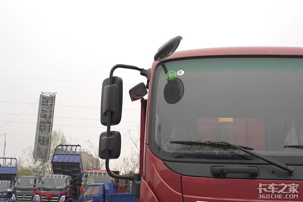 由于会经常出入工地以及复杂道路路段,这款车的后视镜外扩距离很长,采用凸面镜的镜面设计,并且采用一定的夹角设计,可以给到驾驶员更广的视野,同时后视镜采用分体式设计,在后期维护可以尽可能多的降低成本。