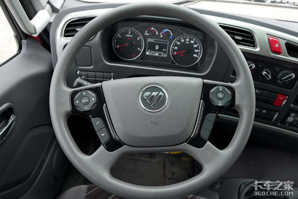 实拍车的驾驶室采用弹簧悬挂的形式,搭配上符合人体工学设计的气囊座椅,在经过恶劣路况时可有效减少驾乘人员的颠簸感,给驾驶员一个舒适的工作环境。这款福田瑞沃大金刚ES7采用的是全新福田超卡2200mm宽体驾驶室,整个驾驶室的空间非常的大,无论是驾驶或是乘坐,都不会感到憋闷,在其后方还安置有一个卧铺,可供驾乘人员休息,也可当做开放式大型储物格使用。