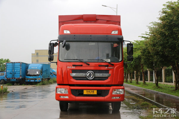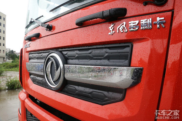 本次介绍的这款东风多利卡D12外观采用了东风商用车经典的红色的涂装,十分亮眼,因为车头采用直立化A柱设计,整体造型上看起来方方正正,非常的简约大气。