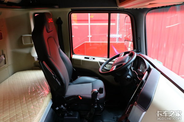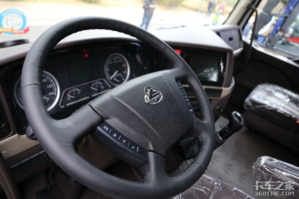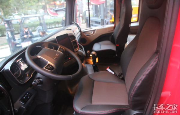 驾驶室内饰整体采用灰黑色调设计,上浅下深颜色层次分明,驾驶员座椅配备气囊减震座椅,结合高顶驾驶室带来的空间表现,其内部的使用灵活性和舒适度表现都是相对不错的。