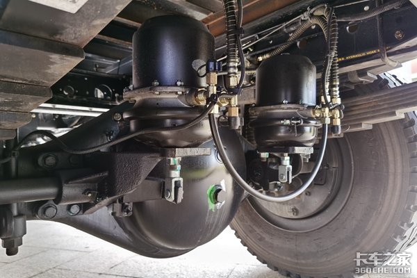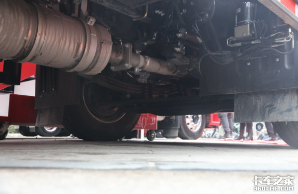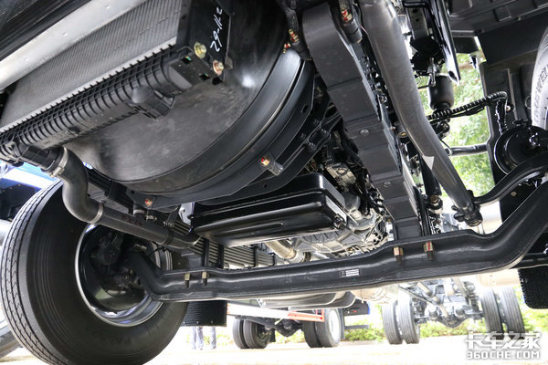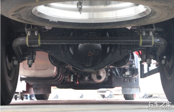根据工况需求,后桥可选4.111、4.333、4.875速比车桥,实拍车辆搭载的是4.333后桥,悬架片簧可选3/9+7、3/4+3。