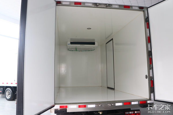 这款盛图轴距为3300mm,货厢内部尺寸为4050x2050x2050mm,容积约17个方,采用冷藏车上常用的三明治复合材料,具有较好的保温性能。匹配冷王RV580冷机,是全球最大的移动温度控制系统制造商之一,品质方面更有保障。