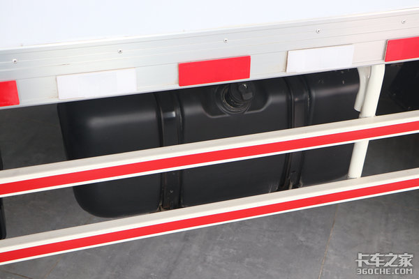 在车架左侧布置有柴油滤芯、尿素罐以及油箱。该车配备的油箱容积为120升,采用复合材质,虽然油箱容积一般,但对于日常的城市物流、商超配送等运输场景来说,是完全够用。