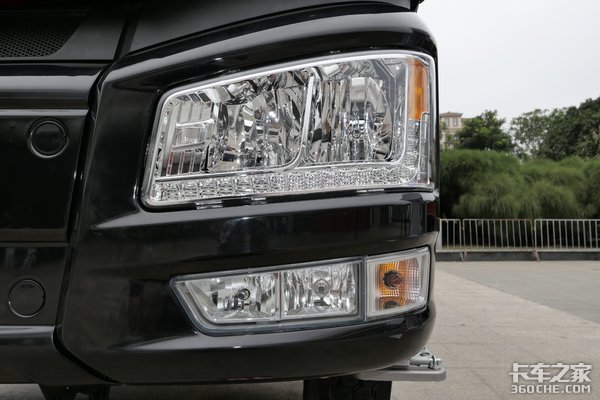 大灯配置上,J6P EV采用了目前卡车主流的卤素光源。远近灯独立灯碗,下方配备雾灯和远光辅助灯,夜间行车的时候进一步加强照明效果,同时还配有一条LED光源的日行灯。