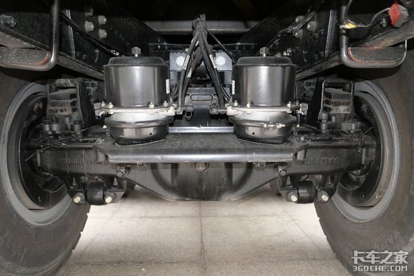 后桥为R16T300W轮减桥,速比5.921,车辆总速比为4.61。对于区域运输和城市渣土工况来说足够使用了。
